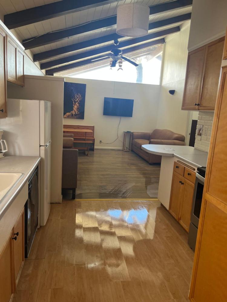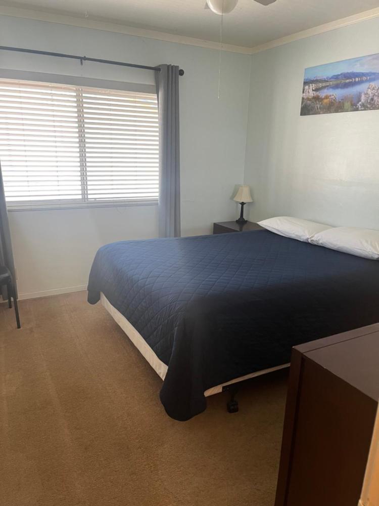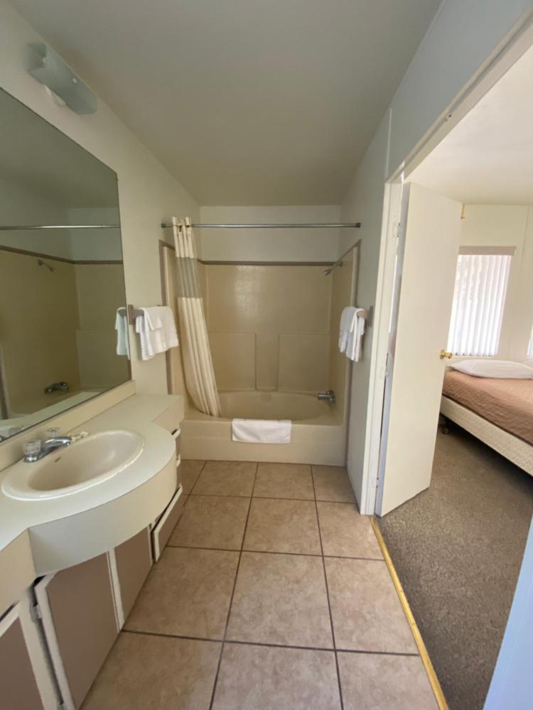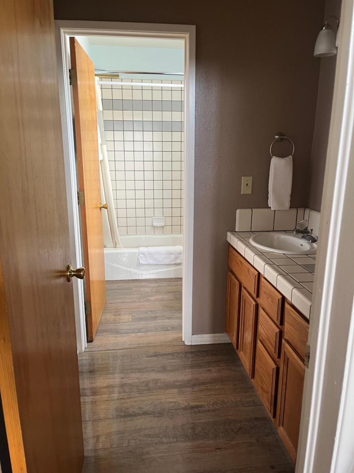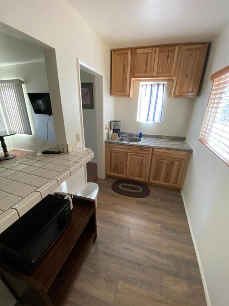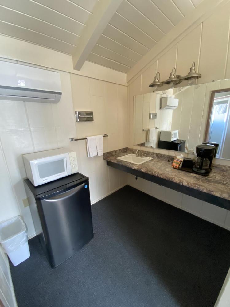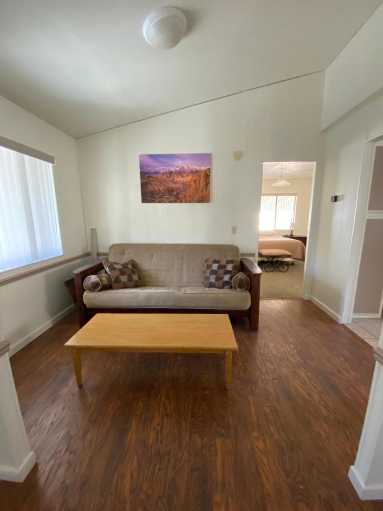 Photos of Bristlecone Motel reveal its no-frills charm—clean interiors, practical furnishings, and a backdrop of desert mountains. The rooms show tidy bedding, neutral tones, and straightforward layouts, while outdoor shots feature the motel’s small-town roadside setting, picnic tables, and the adjoining market. In the distance, the Sierra Nevada and White Mountains frame the horizon.
